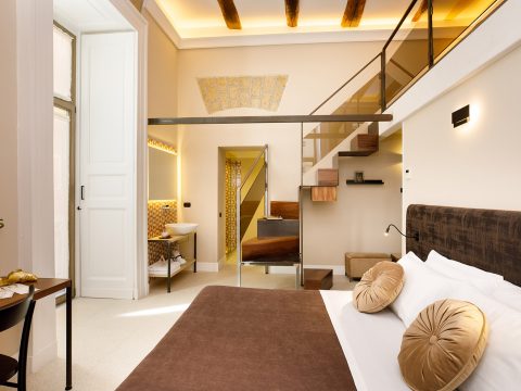 Tutto il fascino e la storia della città metropolitana di Napoli sono racchiusi nella nostra Camera Superior che vanta arredi rivisitati in chiave moderna, sempre mantenendo riferimenti all’eleganza dell’antico. La camera con balcone e vista sulla città, dispone di tutto l’essenziale per trascorrere un soggiorno speciale in una città magica. La camera ha un comodo letto matrimoniale e misura circa 20 m².